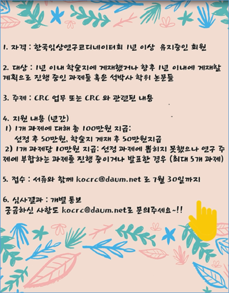 한국 임상연구코디네이터회 학술연구 지원 사업