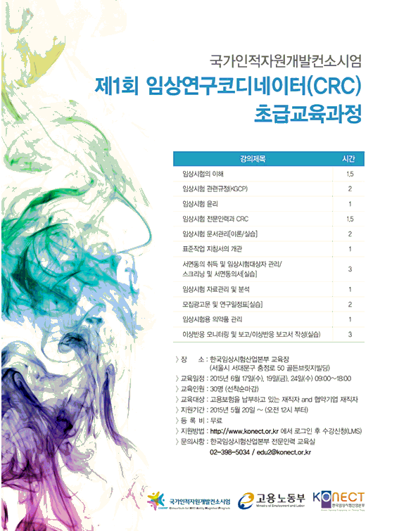 [한국임상시험산업본부] 임상연구코디네이터(CRC)-1차 초급교육과정